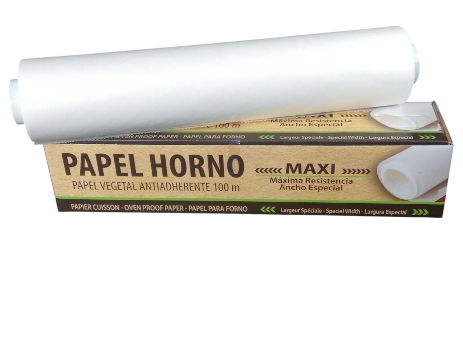 Rollo de papel de horno antiadherente especialmente diseñado para uso en cocina y repostería, ideal para hornear, asar y cocinar sin que los alimentos se peguen. Gracias a su tratamiento especial, permite cocinar de forma más limpia y saludable, evitando la necesidad de añadir aceites o grasas.